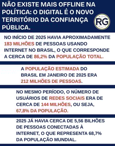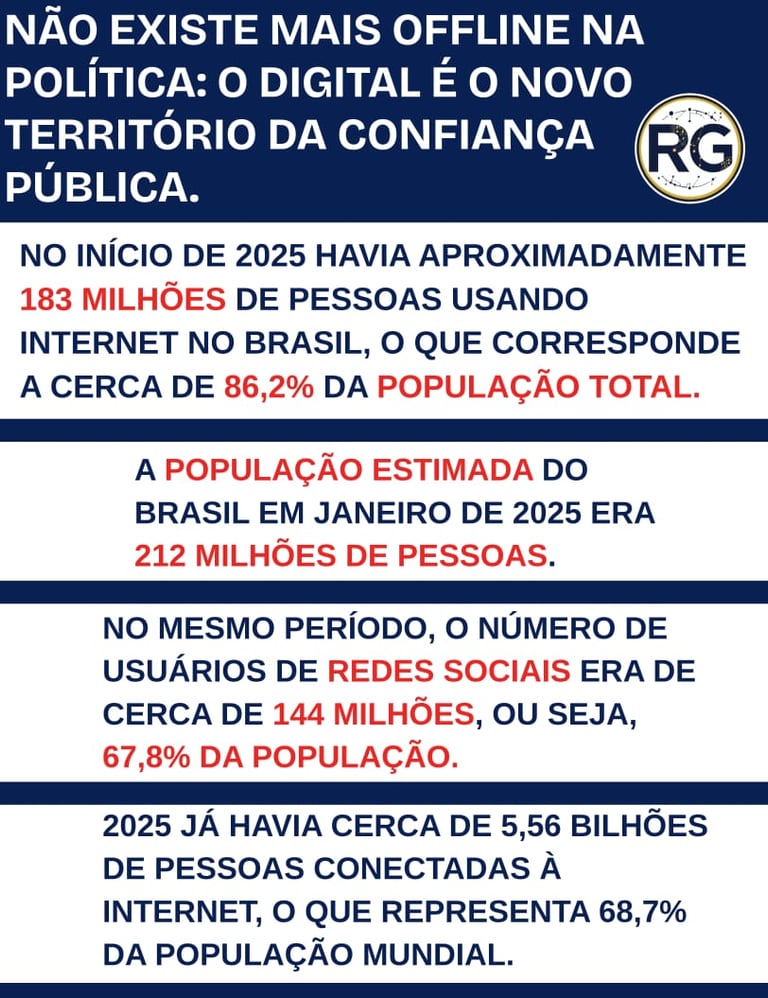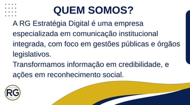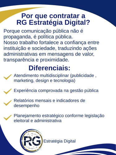 A RG Estratégia Digital é uma empresa especializada em comunicação política, marketing digital e posicionamento estratégico para perfis públicos, mandatos e campanhas eleitorais. Atuamos com planejamento, diagnóstico e execução de estratégias que fortalecem imagem, reputação e conexão com o público.