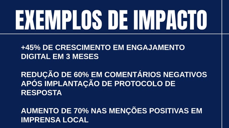 Monitoramos o que é dito sobre sua instituição e criamos protocolos de resposta rápida. Em tempos de alta exposição digital, a gestão pública precisa estar preparada para agir rápido e com responsabilidade diante de situações críticas. A RG Estratégia Digital oferece protocolos de gerenciamento de crises que protegem a imagem da instituição, garantem respostas ágeis e evitam danos à reputação do poder público.